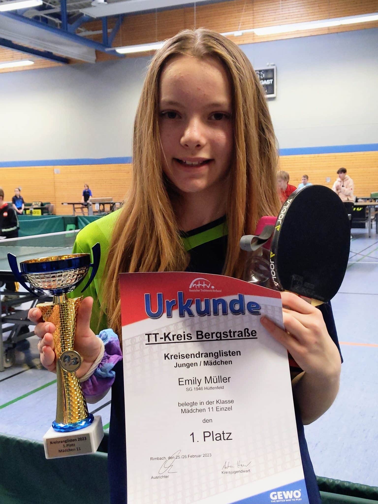 (ks) Das Wochenende 25./26.2.2023 stand für die SG Hüttenfeld ganz im Zeichen von Tischtennis-Wettkämpfen. Viele der Hüttenfelder NachwuchspielerInnen traten in Rimbach zum Kreisranglistenturnier an. Zwei lange anstrengende Tischtennistage liegen hinter den SpielerInnen. Am Samstag, 25.2., fanden für alle männlichen Altersklassen die Vorrundenspiele statt. Aufgrund der wenig aktiven Mädchen im Kreis, starteten diese gleich am Sonntag, 26.2. zur Endrunde.