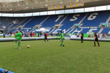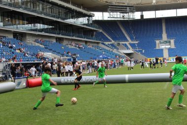 Außerdem gab es auf einem Teil der Parkplätze Foodtrucks, eine Hüpfburg und verschiedene Spielstationen für die Kinder. Dort hatten Geschwisterkinder und Spieler, die gerade kein Spiel hatten, jede Menge Beschäftigung.