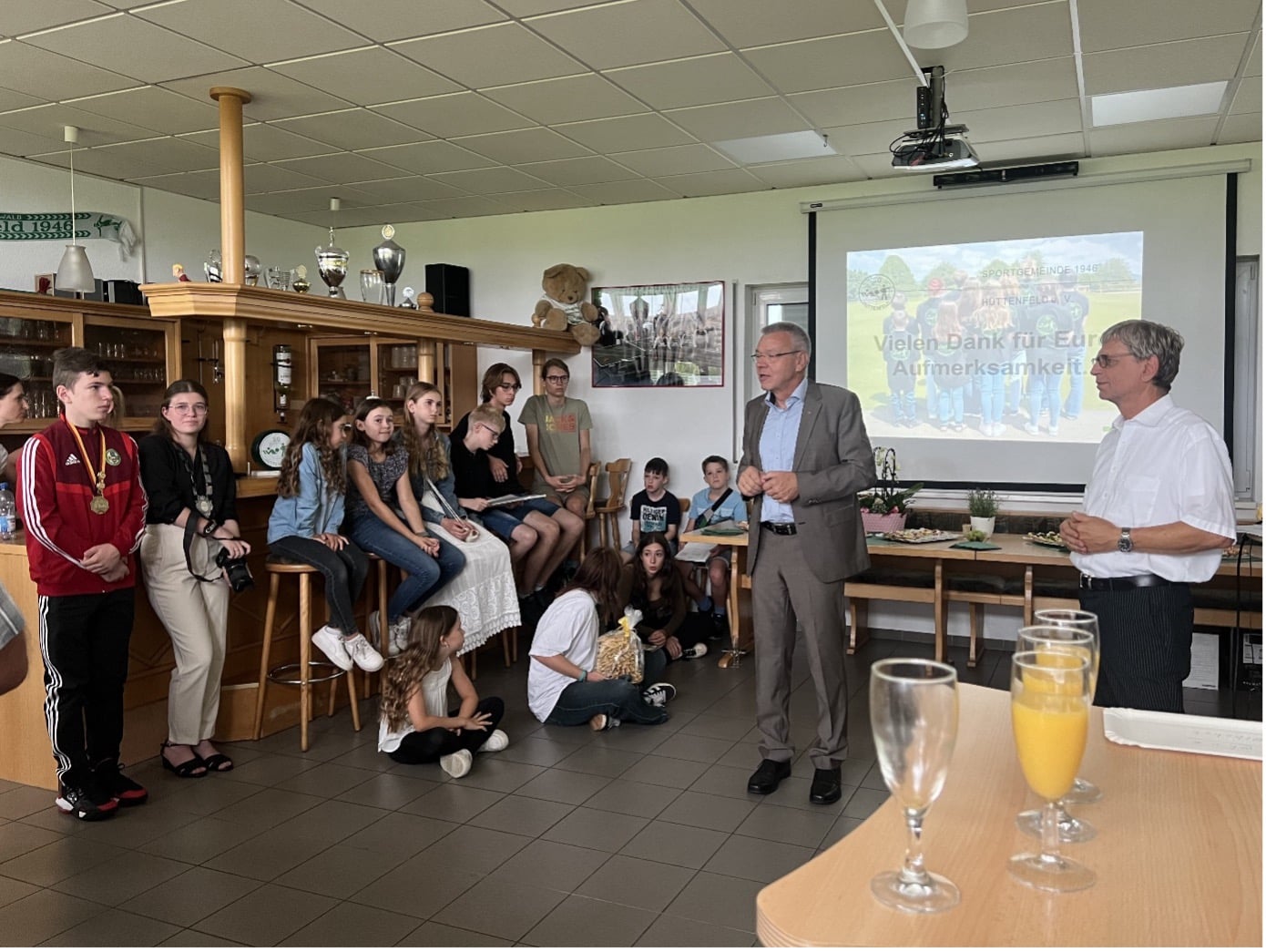 In seinem Grußwort hob Herr Bürgermeister Gottfried Störmer die Bedeutung des Ehrenamtes hervor. Er betonte, dass die Hüttenfelder Schützen nicht nur im sportlichen Bereich auf sich aufmerksam machen. Auch bei Aktivitäten wie der „sauberen Gemarkung“ und dem „Freiwilligentag“ beteiligen sich die Schützen regelmäßig, was man sowohl in der Tagespresse als auch im Internet verfolgen könne. Im Anschluss überreichte er einen symbolischen Umschlag mit einer Zuwendung der Stadt Lampertheim. Im Namen der Schützenjugend bedankten sich Gabriele Jankevičiute und Valentina Fornaguera-Daghero für die Bemühungen um die Jugend im Verein und den Einsatz zur Integration der Schülerinnen und Schüler aus dem litauischen Internat.